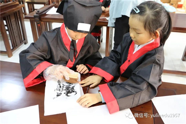 经过柒木文化刘昶志的讲解后,孩子们都很熟练的掌握了雕版印刷的技巧。看着孩子们专心致志的操作,不禁为孩子们感到骄傲自豪。从理论到实际操作,能让孩子对非遗文化的学习而事半功倍,对非遗文化的了解更加深刻。