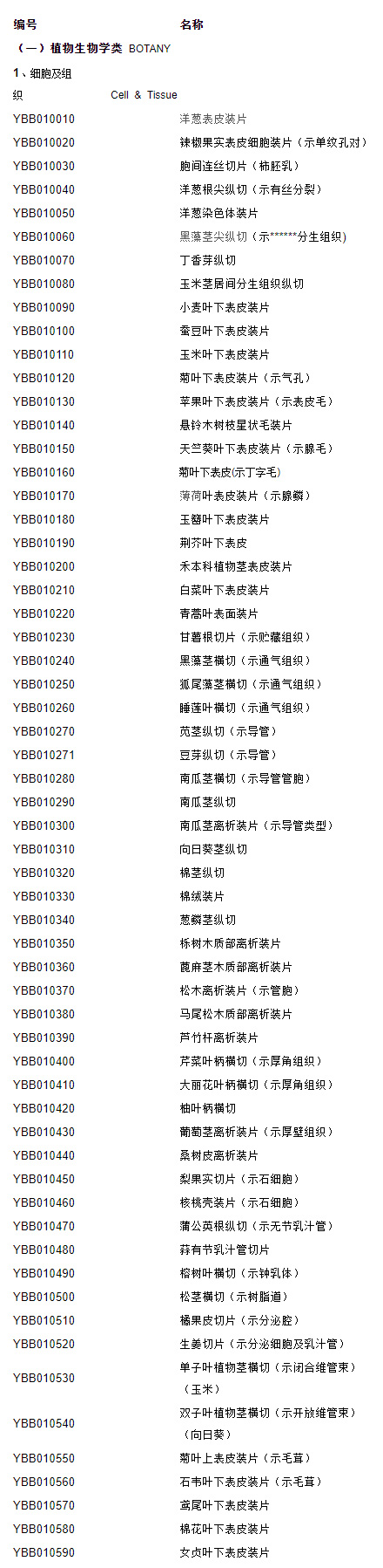 2.标本为平铺装片,每片材料不小于2×2㎜,四周剪切整齐;