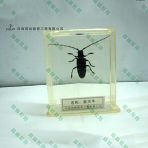 海南星天牛包埋标本不但在教学中对老师和同学带来了帮助,而且,也便于实验室的保管,使用包埋标本提高了学生学习的主动性,我公司是教育工程公司,生产的教学道具,产品表面清洁、光滑,真实自然,非常直观的展现学习内容,寓教于乐,创新自如。星天牛包埋标本适用于研究星天牛,使用方便,透明的表层便于学生辨识与观察。